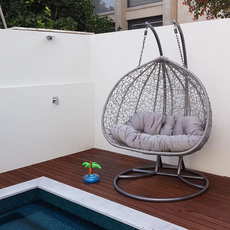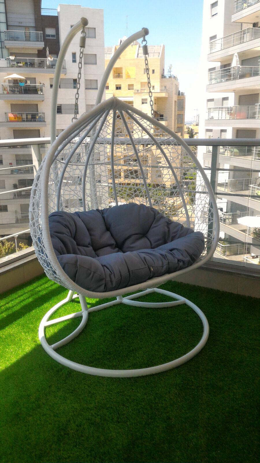 - ערסל תליה זוגי ענק מפנק ביותר, בעל מבנה מתכתי הצבוע בצבע אפוקסי על מנת למנוע החלדה, ומשולב ראטן סינטטי הקלוע סביבו.