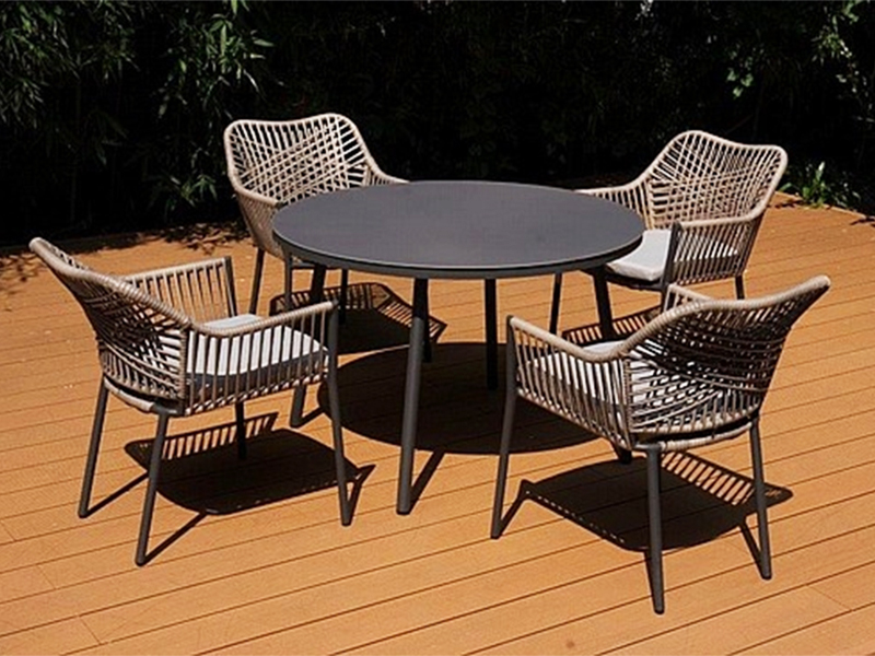 השולחן והכסאות עשויים מאלומיניום איכותי ועבה במיוחד (בשילוב ראטן בכסאות).