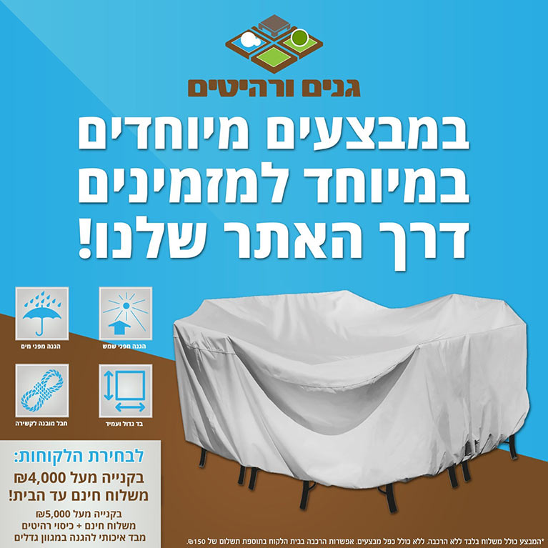 -40%5,990.00₪מערכת ישיבה 5 מושבים – דגם בריג'יט5,990.00₪ -40%5,990.00₪מערכת ישיבה 5 מושבים – דגם בריג'יט5,990.00₪מערכת ישיבה בקו עיצוב יוקרתי וקלאסי, תתאים בצורה מושלמת לגינות, מרפסות וחללי פנים. שלדת המערכת עשויה מאלומיניום יצוק, ללא ברגים והיא קשיחה חזקה ומאסיבית ביותר.